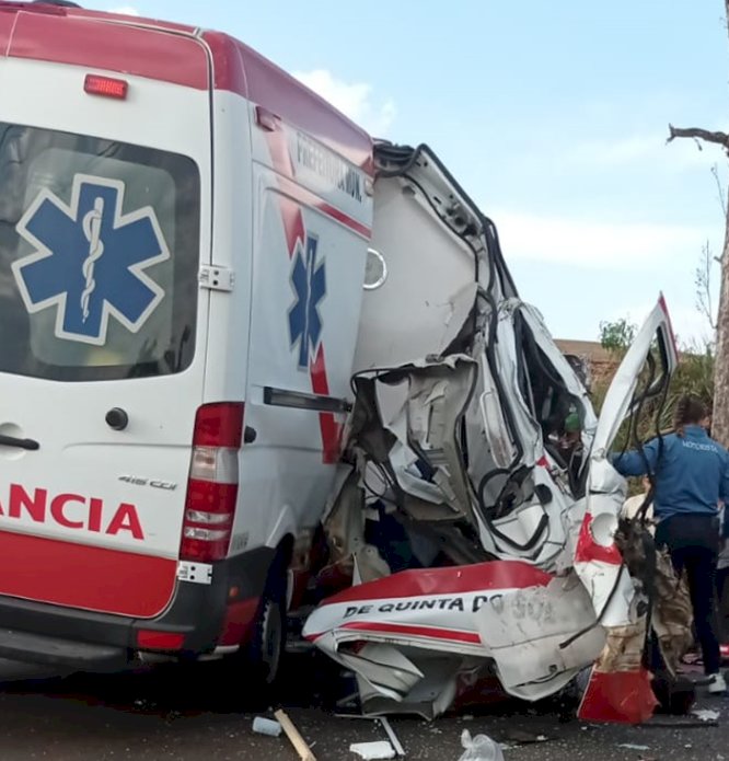 O acidente envolveu a ambulância e um caminhão-baú. De acordo com as primeiras informações, o caminhão teria invadido a pista contrária após o estouro de um pneu, ocasionando a colisão frontal.