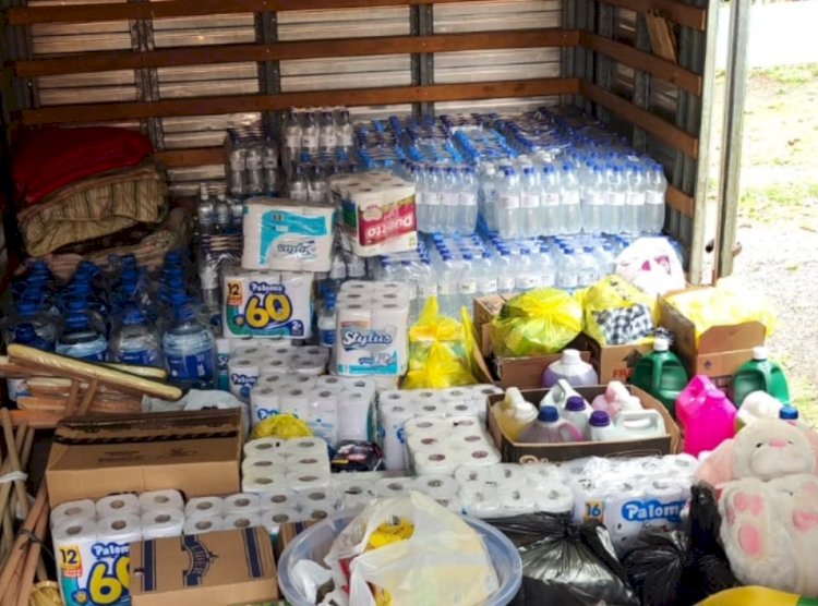 A mobilização reuniu itens prioritários, como produtos de higiene e limpeza, roupas íntimas novas, alimentos não perecíveis e água potável.