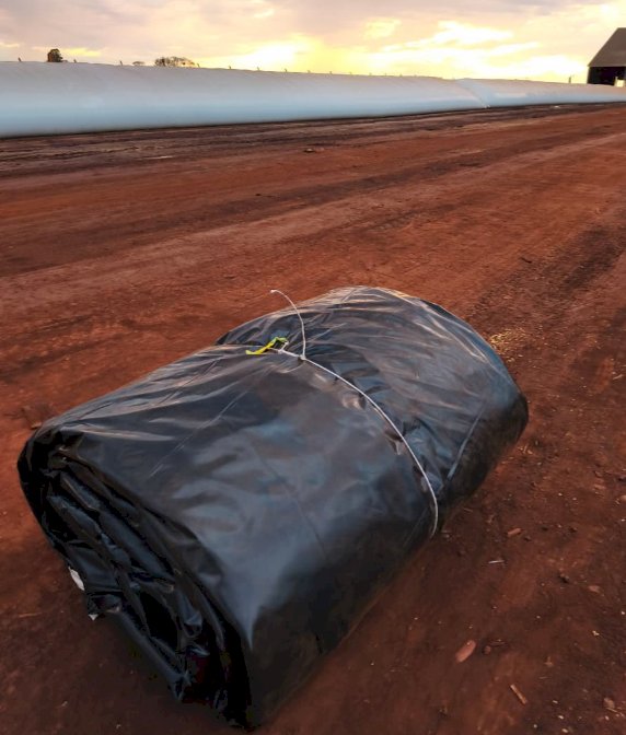 A Silo-Bolsa é fabricada em lona plástica de alta resistência, suportando sol, chuva e até mesmo contato direto com a água — sendo utilizada, inclusive, para revestimento de taipas em tanques de piscicultura.