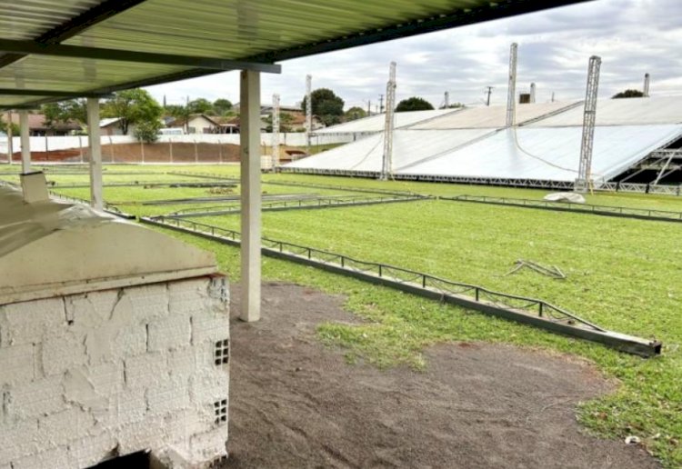 Os trabalhos desta semana estão concentrados na montagem do pavilhão central, espaço que vai receber os shows nacionais gratuitos e a tradicional Festa Nacional do Costelão Recheado.
