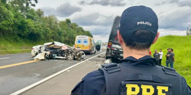 Um grave acidente entre um carro e um ônibus na BR-277 deixou duas pessoas mortas na tarde deste domingo (26), em Palmeira, nos Campos Gerais do Paraná.